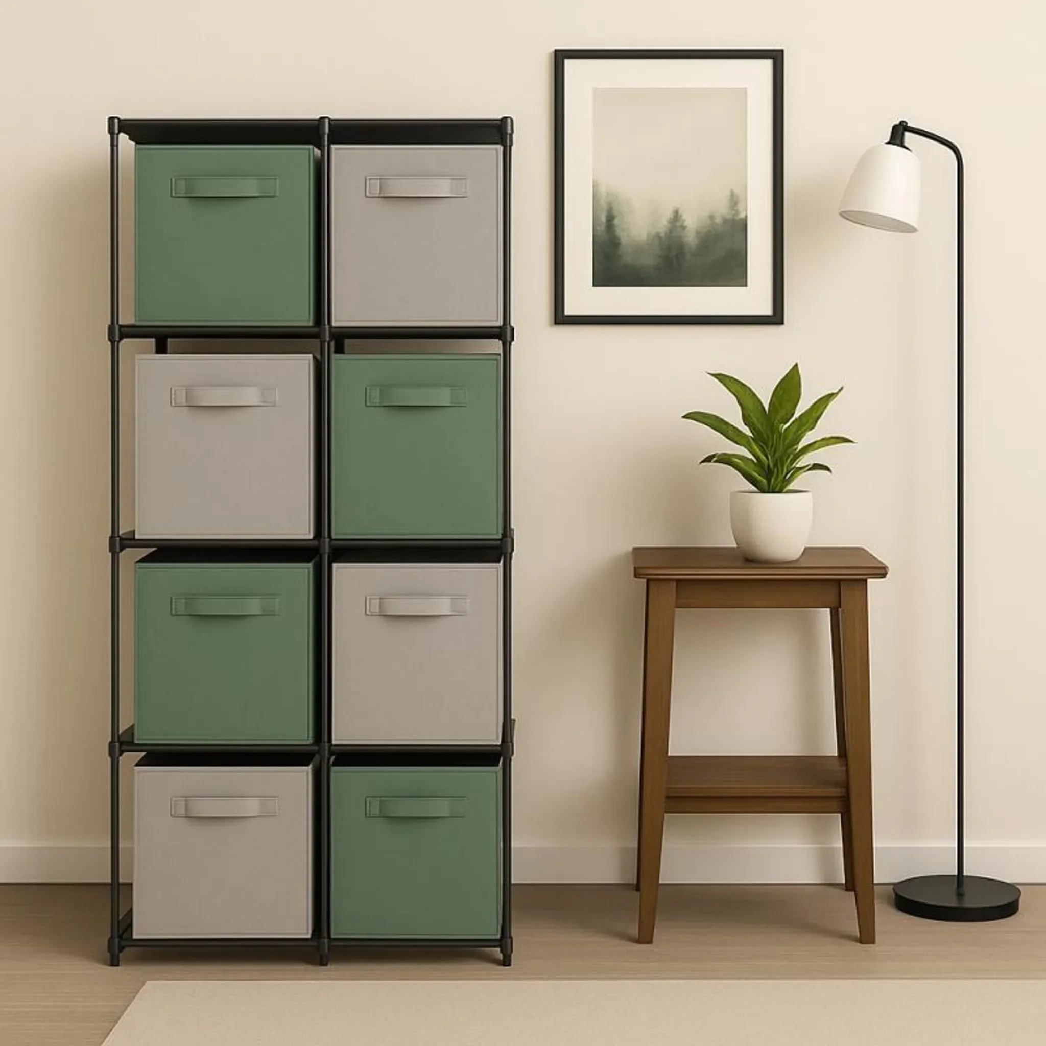 Die grüne Aufbewahrungsbox aus Textil ist eine praktische und stilvolle Lösung für Kallax-Regale oder andere Aufbewahrungssysteme. Sie bietet viel Platz für Kleidung, Spielzeug, Bücher oder andere Gegenstände, die leicht zugänglich aufbewahrt werden sollen.