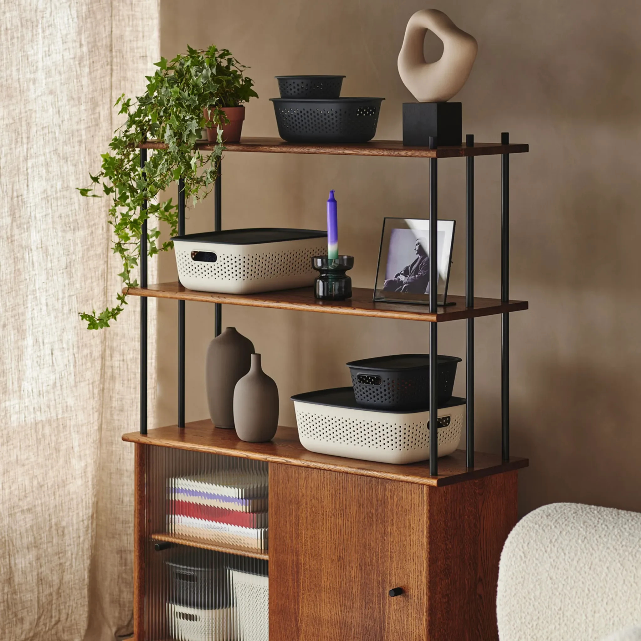 | Besonderheiten | Durchbrochenes Design, stapelbar, seitliche Griffe, spülmaschinenfest, hitze- und kältebeständig (-30 °C bis +90 °C) |