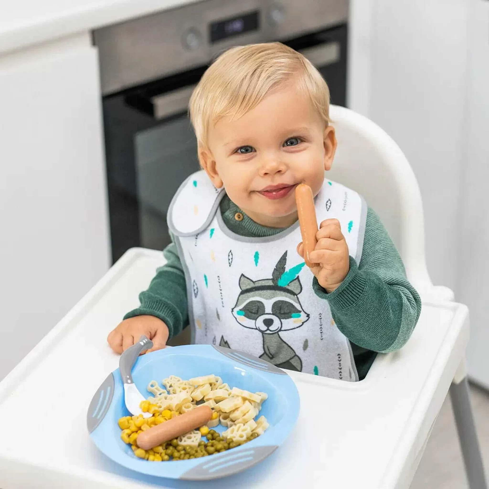 Im Set enthalten sind zwei flexible Baby-Ono-Teelöffel, die sich dank formbarem Kunststoff an kleine Hände und Rechts- wie Linkshänder anpassen. Sie sind rundum weich, sanft zum Zahnfleisch und perfekt, um selbstständiges Essen spielerisch zu üben.