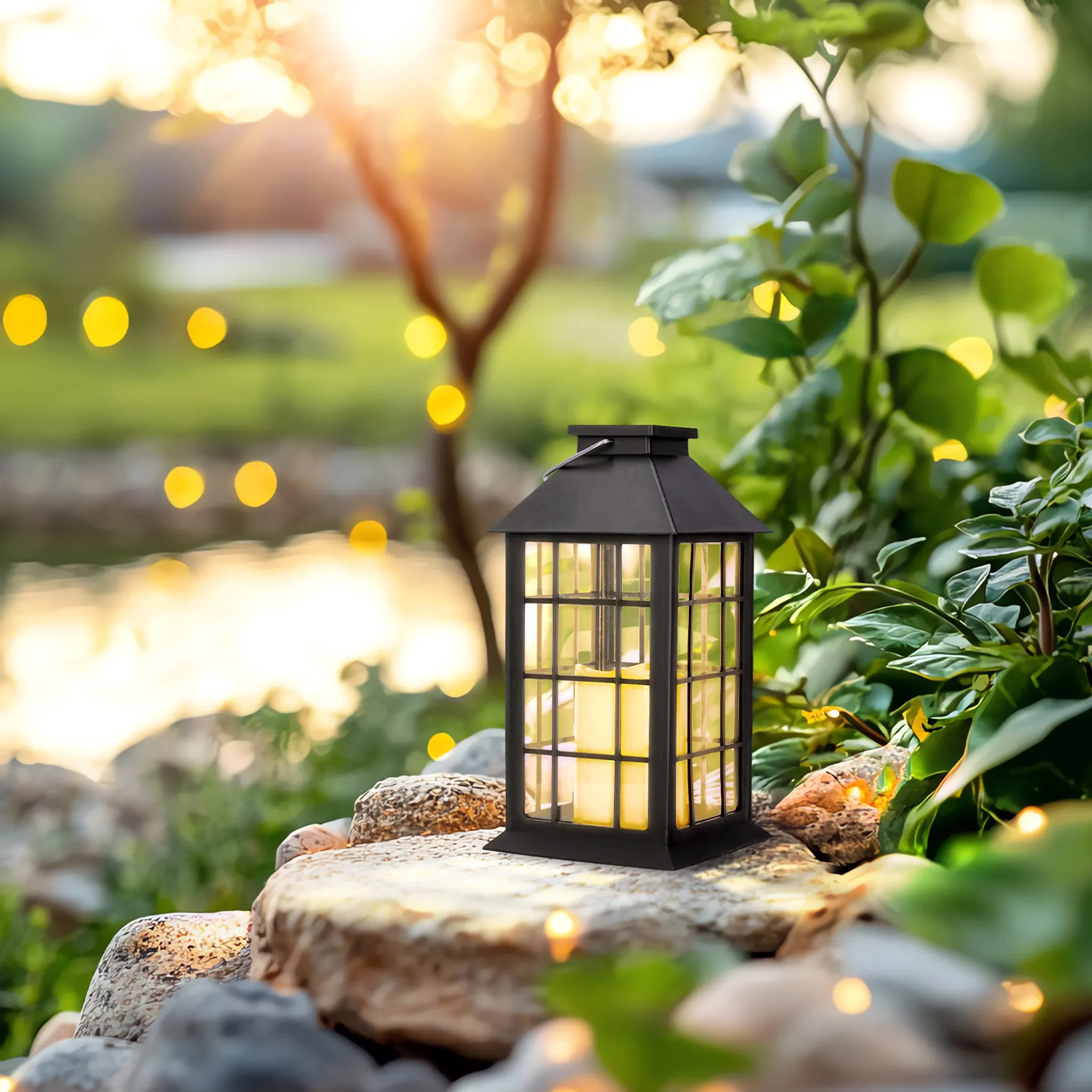 Dekorative Solarlaterne • Warmweißes LED-Licht • Automatisches Einschalten • 6–8 h Leuchtdauer
