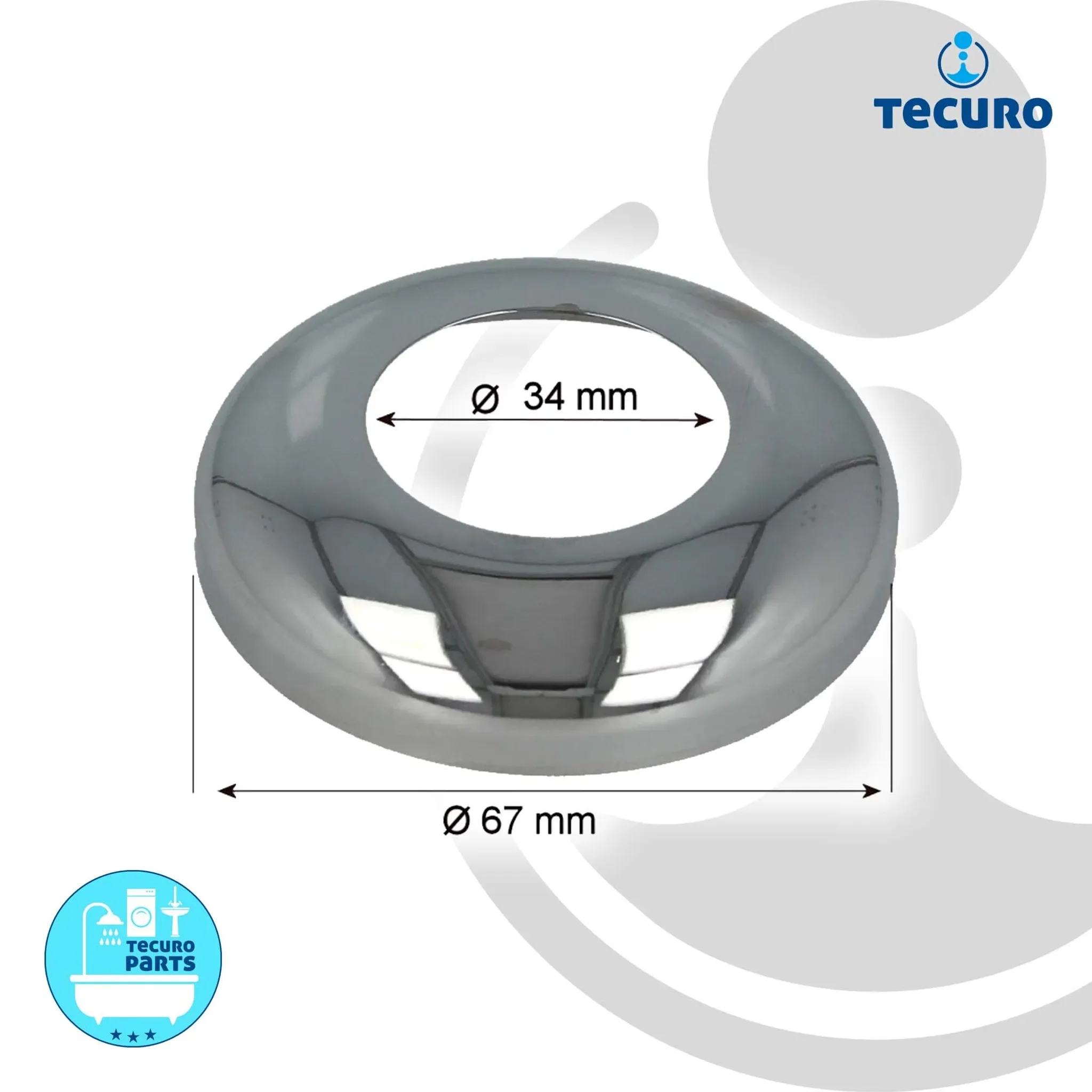 Die tecuro DESIGN-Hahnrosette bietet eine stilvolle und langlebige Lösung zur Verkleidung von Wasseranschlüssen. Dank ihres präzisen Innenmaßes von 34 mm eignet sie sich ideal für Installationen im Bad-, Küchen- oder Hauswirtschaftsbereich und überzeugt durch ihre hochwertige, hochglanzverchromte Oberfläche.