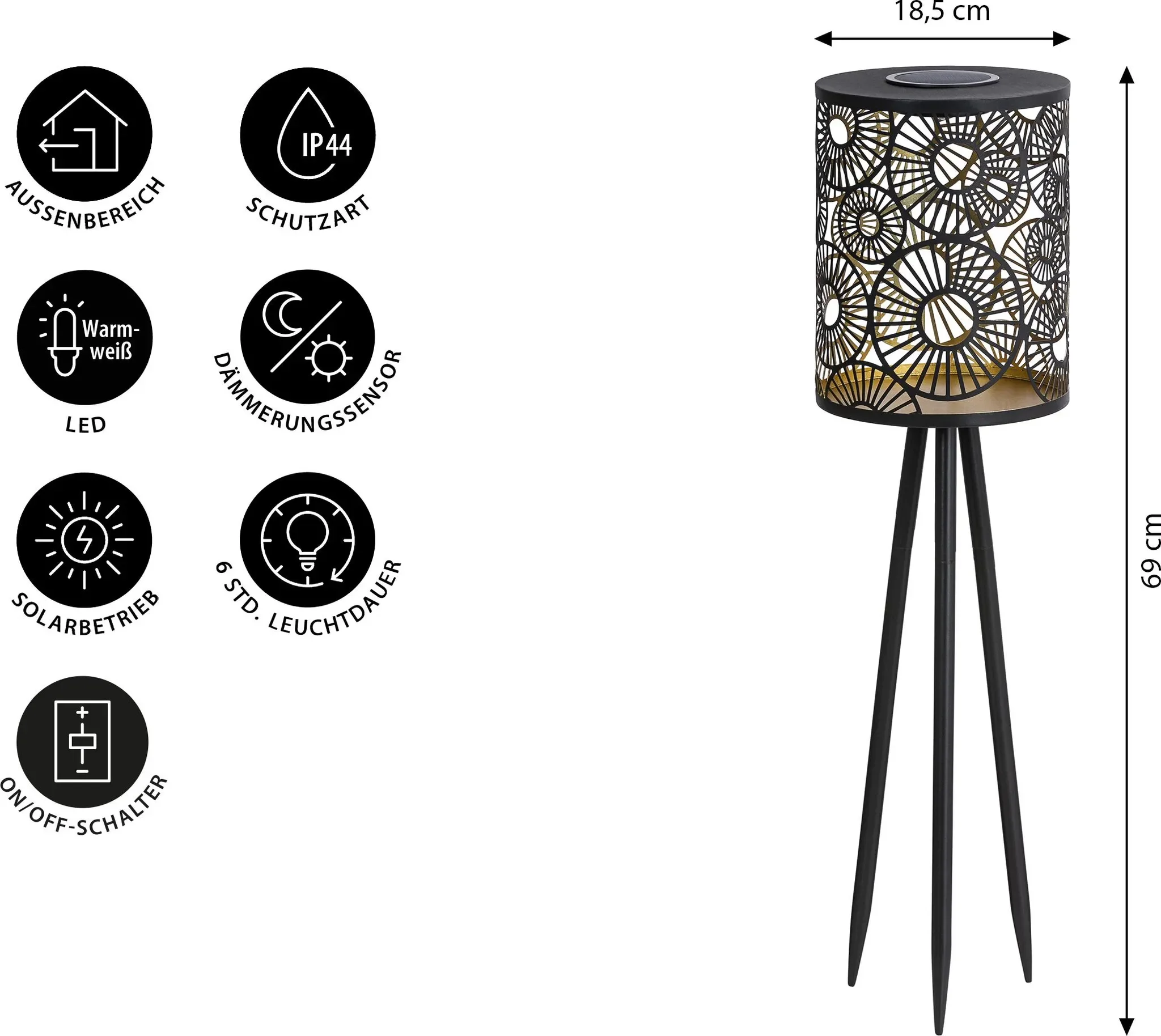 1 × Dehner Solar-Stehleuchte „Rabat“ Integriertes Solarmodul & LED-Lichtquelle Akku vormontiert (technische Spezifikation vom Hersteller nicht benannt) |