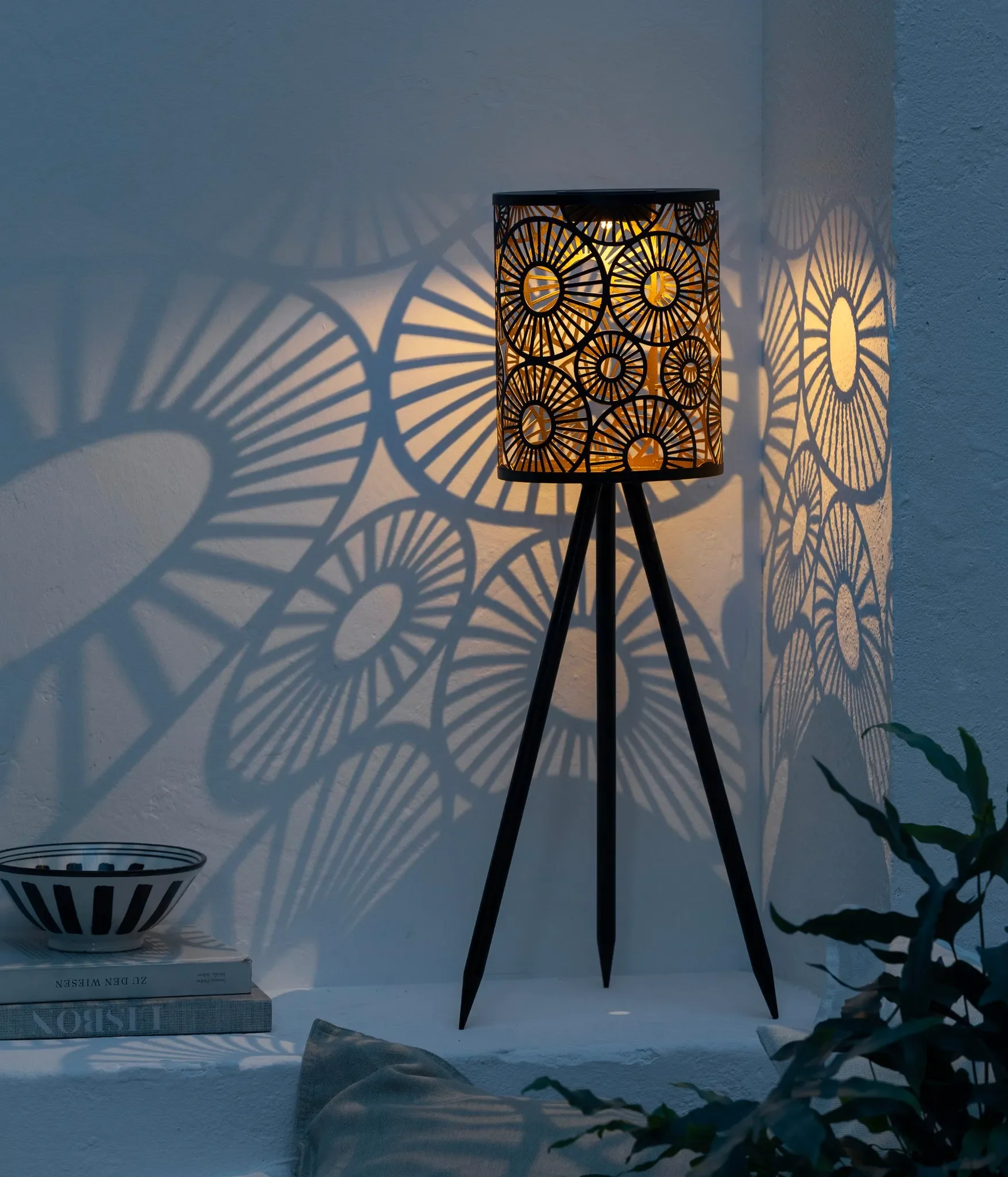 Die Solar-Laterne Rabat besticht durch ihr orientalisch anmutendes Muster, das beeindruckende Schattenspiele erzeugt. Sie arbeitet vollständig stromunabhängig und ist dank Solarpanel flexibel überall platzierbar. Ob als dekoratives Highlight im Garten, auf der Terrasse oder im Eingangsbereich – die Stehleuchte sorgt ab dem ersten Abend für ein warmes, einladendes Lichtambiente.