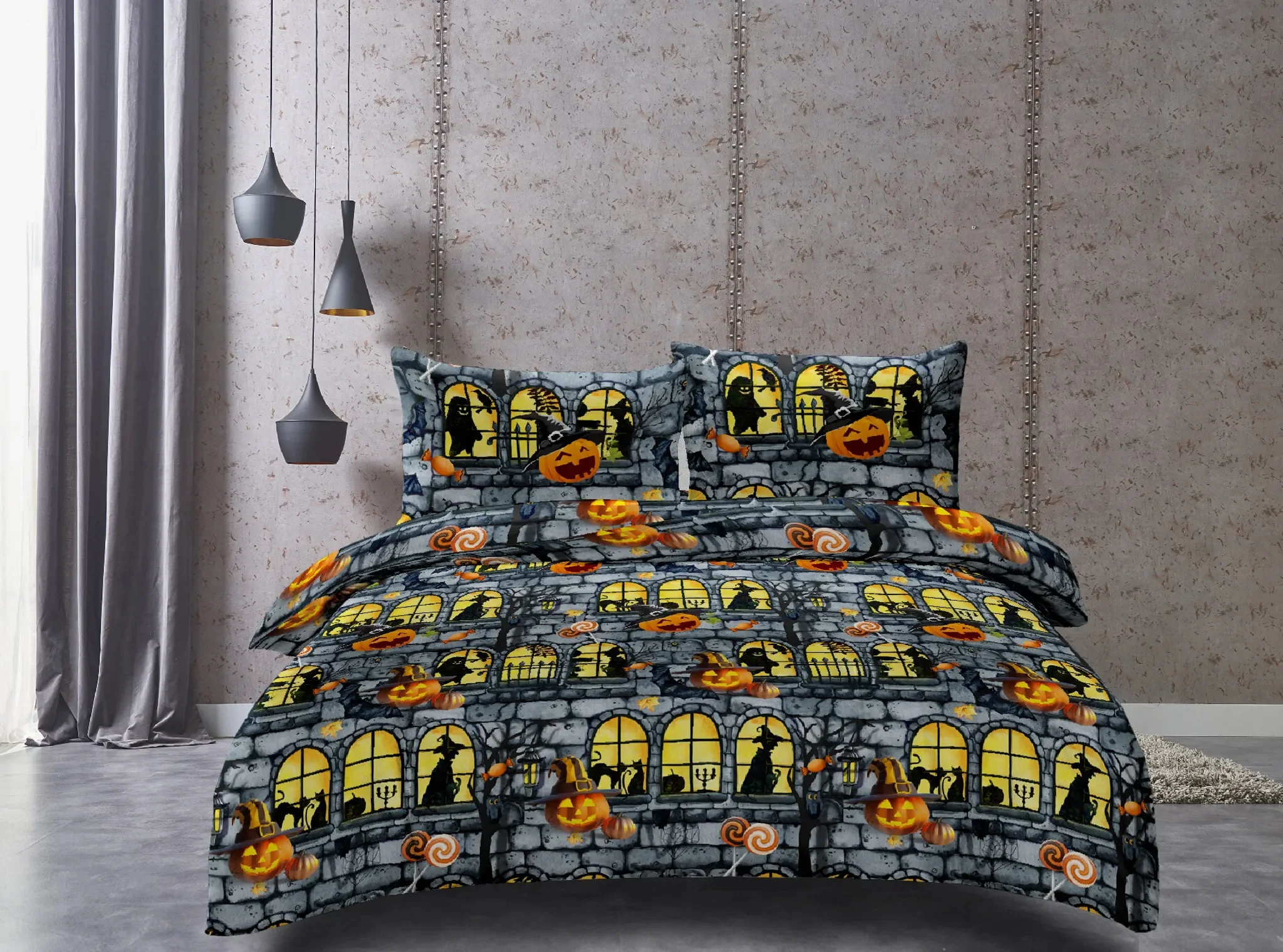 FEBE Halloween Bettwäsche 135×200 cm – 2-teiliges Set mit Kissenbezug