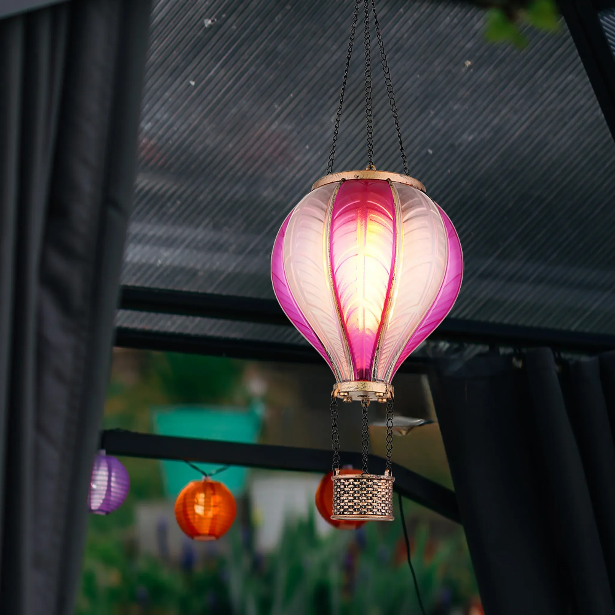 Dekorative Solar-Hängeleuchte im Heißluftballon-Design • 20 LEDs • Warmweiß 1600 K • IP44 • Für Garten & Terrasse