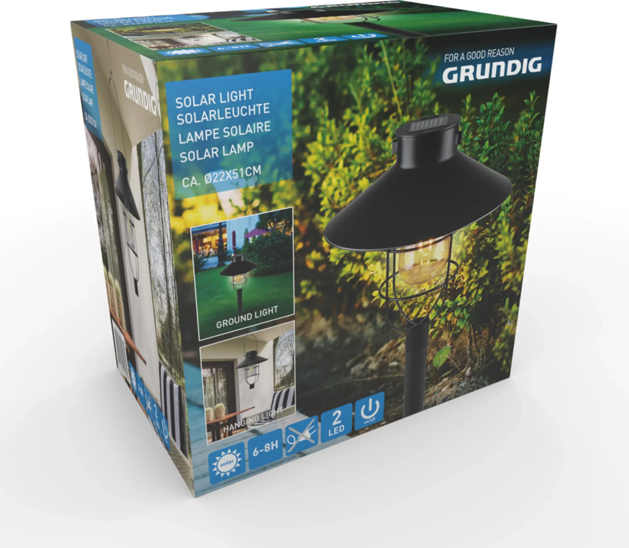 Grundig Solar-Gartenlampe, ca. 21,8 × 21,8 × 64 cm, LED, Metall/Kunststoff, mit Erdspieß & Aufhängung