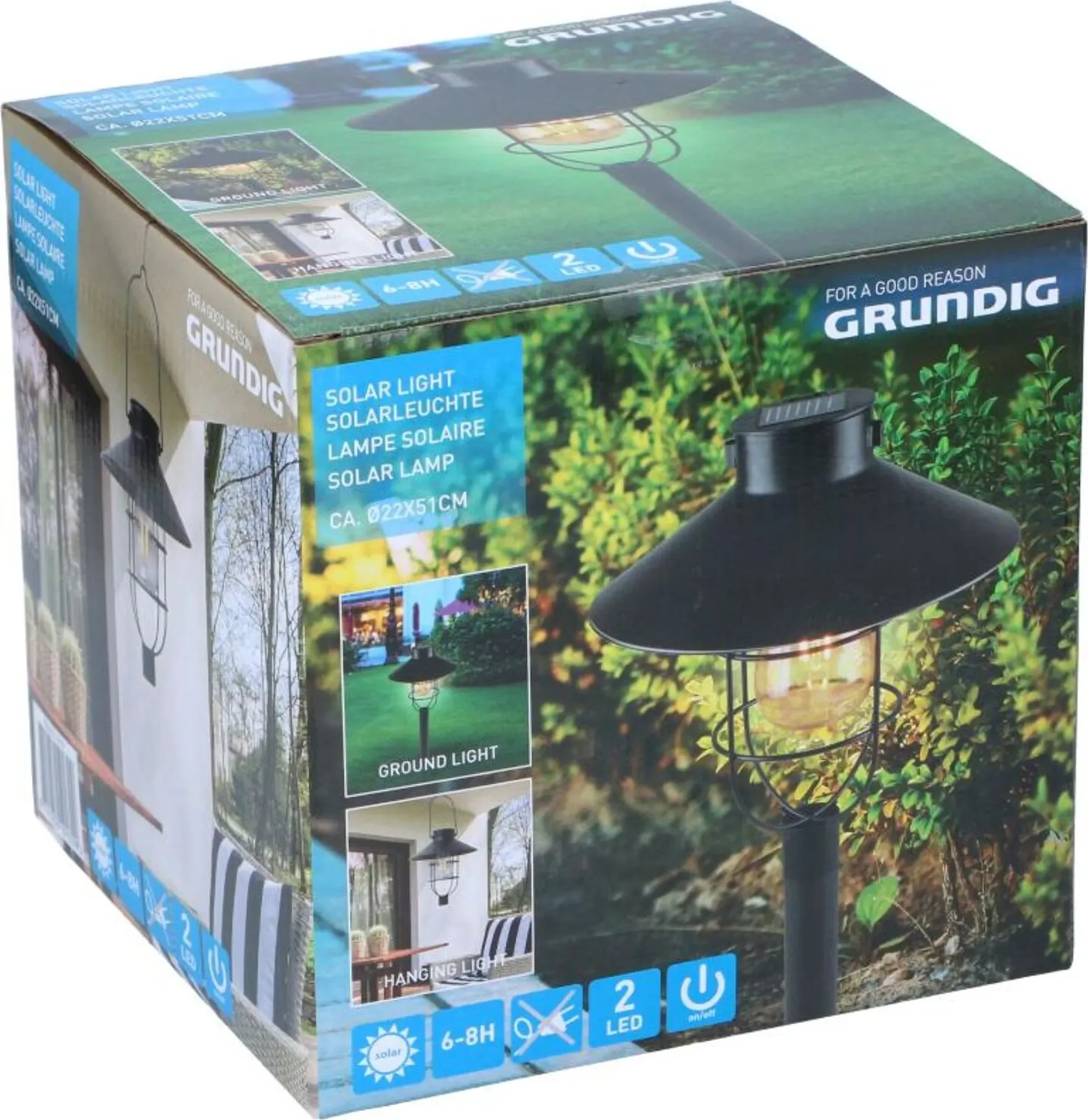 | Im Paket | 1 × Grundig Solar-Gartenlampe • 2 × Stabverlängerungen inkl. Erdspieß • integrierter Akku (1 × Ni-MH AAA 600 mAh) |
