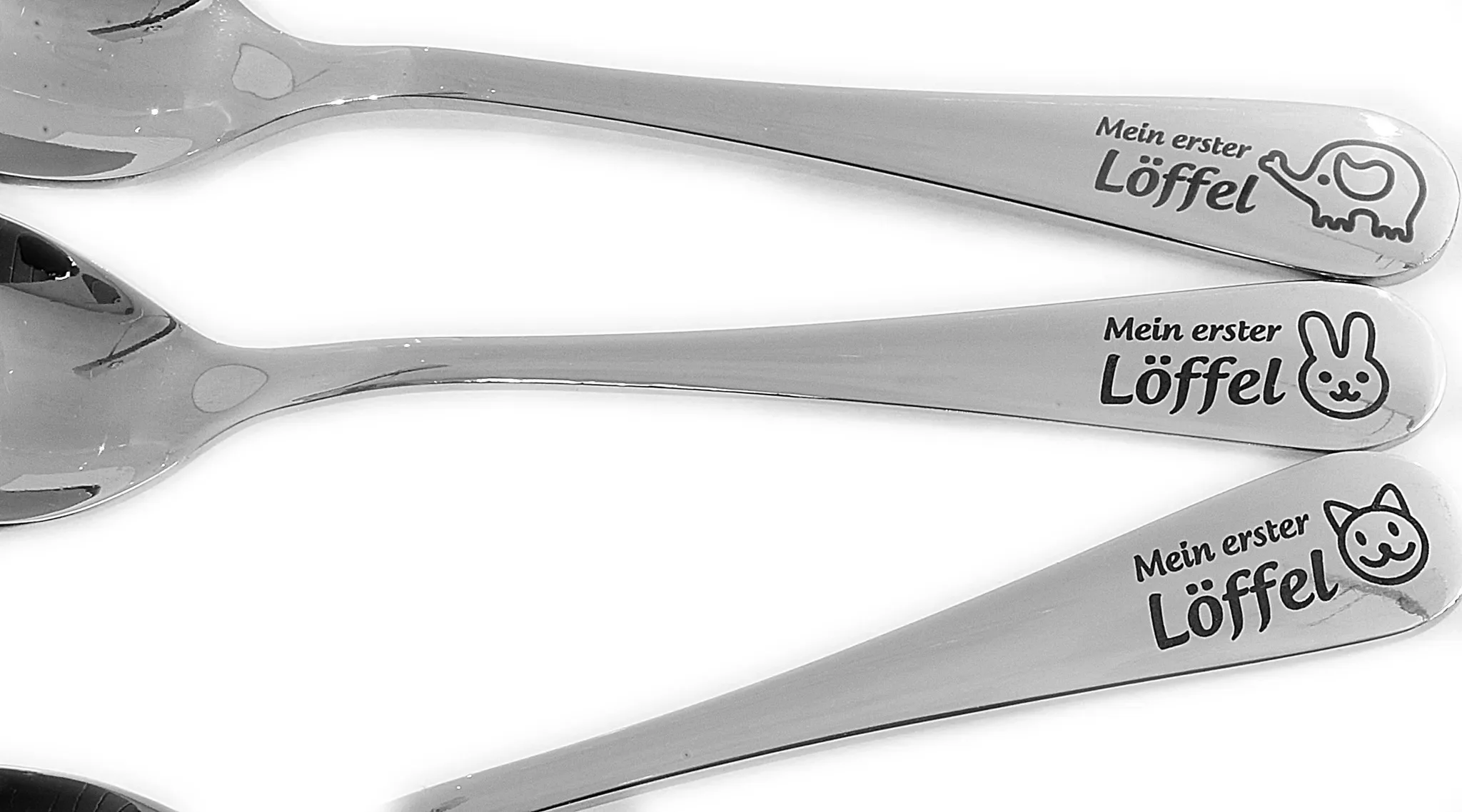 Highlights: Hochwertiger Edelstahl 18/10, aufwendige Lasergravur, ergonomischer Kindergriff, ideal als Geschenk und Erinnerungsstück, robust und langlebig.
