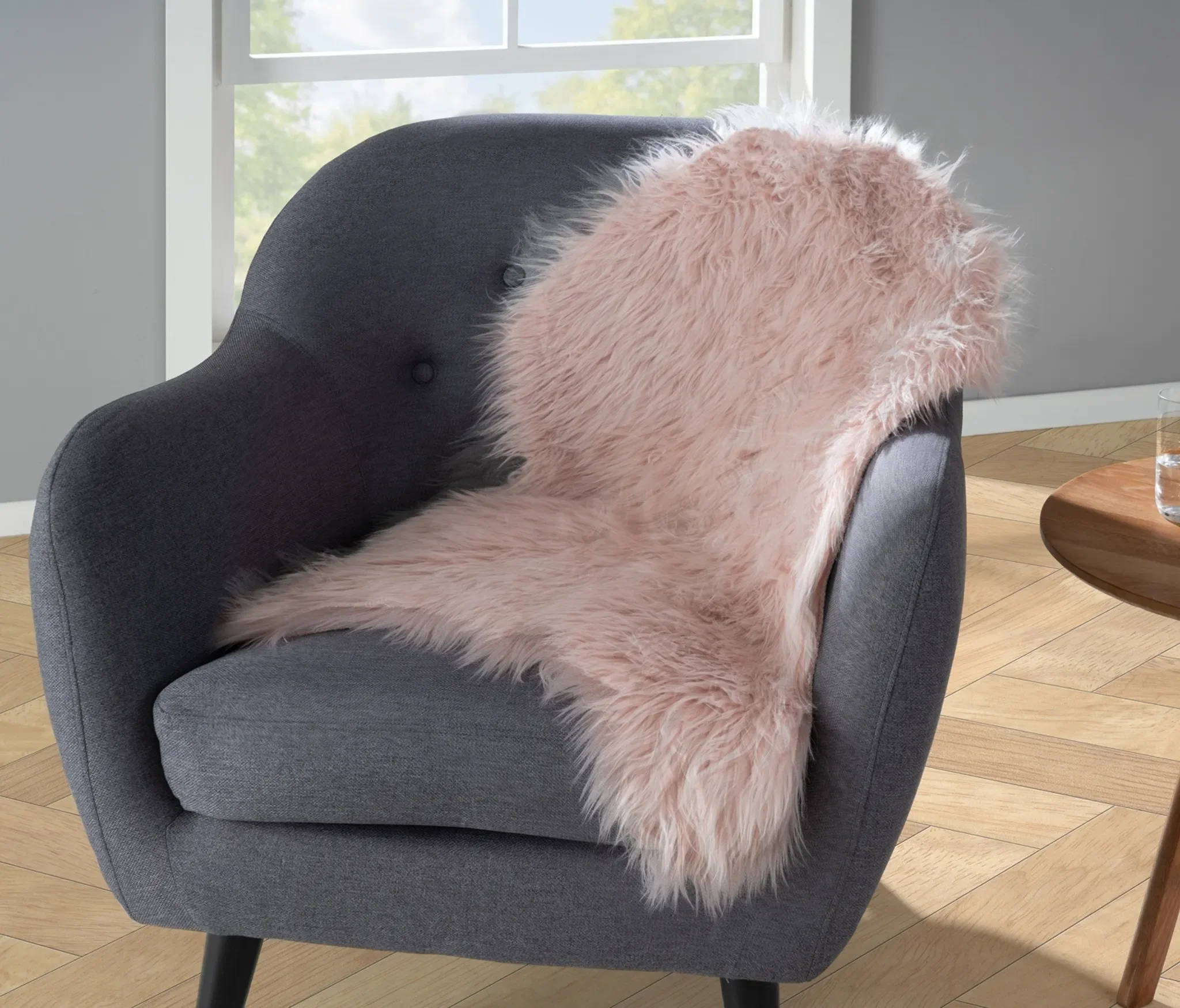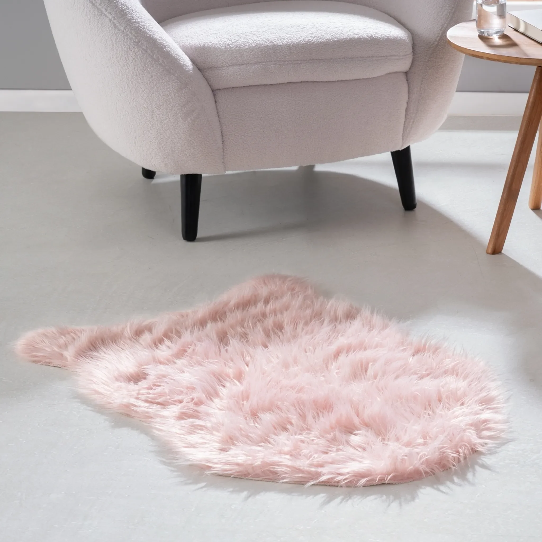Highlights: Zarter Rosaton, weiches & kuscheliges Kunstfell, vielseitig kombinierbar, langlebiges Material, ideal für Wohn- und Schlafbereiche.