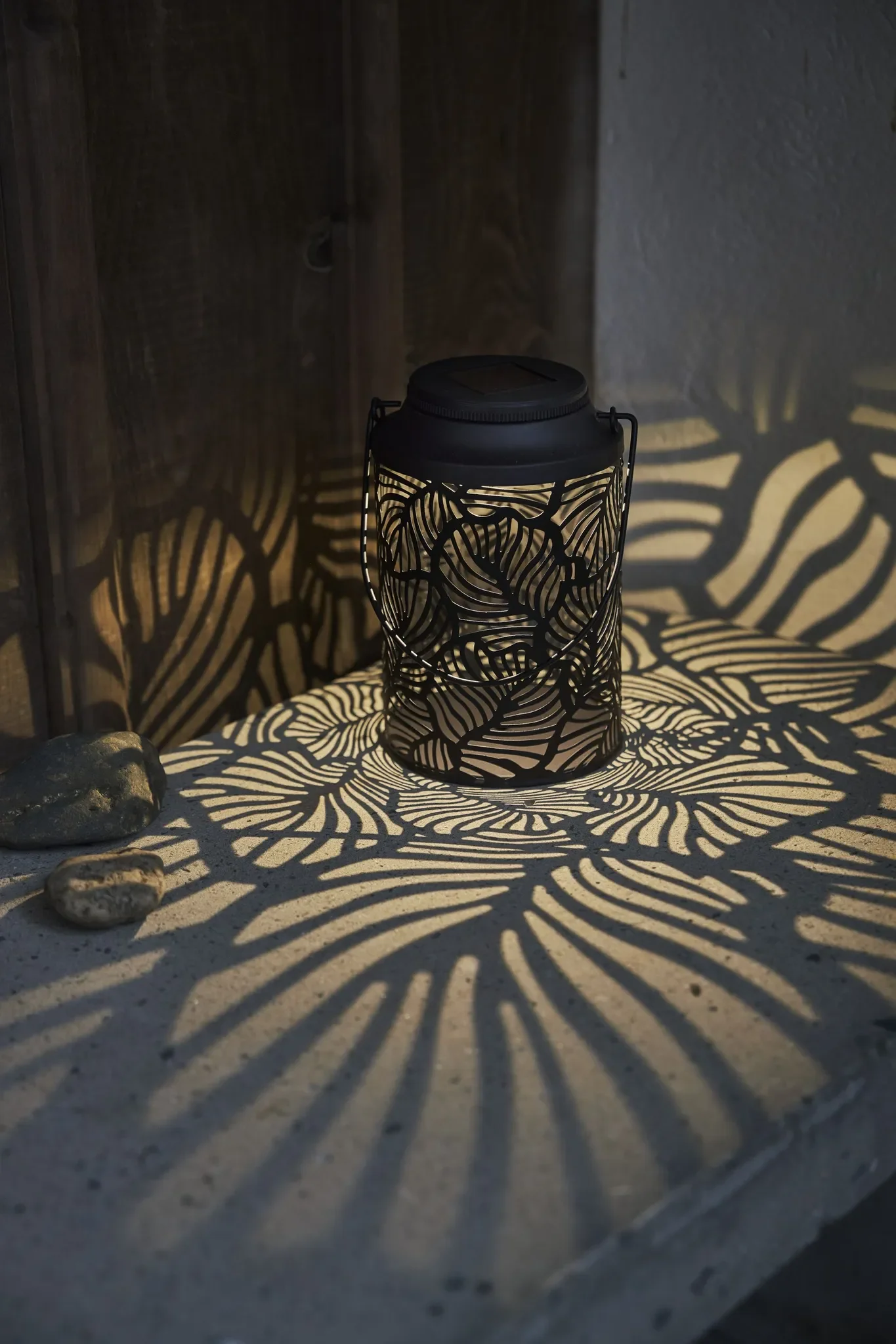 Produktinformationen "LED-Solar-Dekolaterne „Leafy“, schwarz, Blattmuster, warmweiß, Metall, 17 × 11,5 cm"