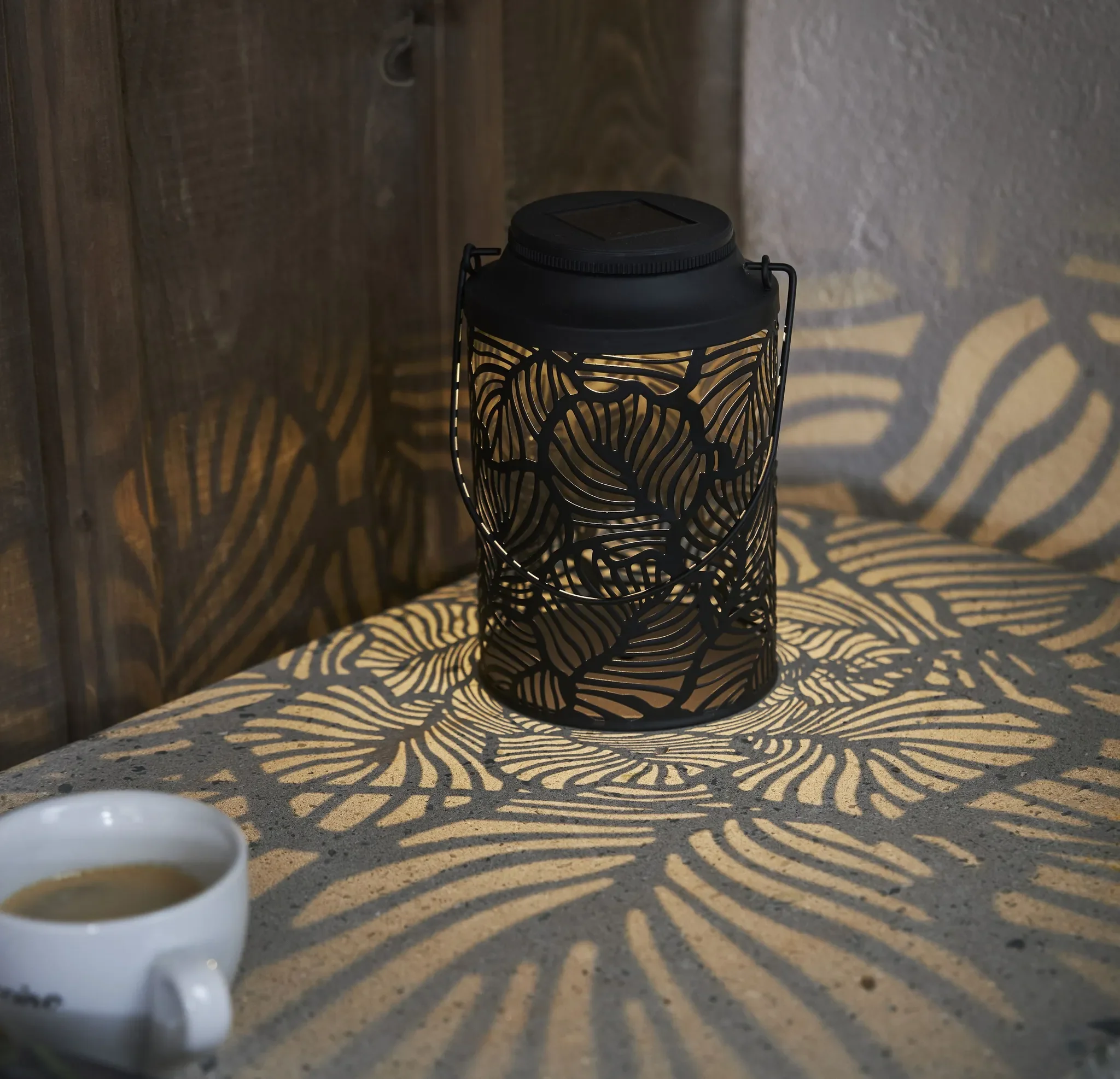 Die LED-Solar-Dekolaterne „Leafy“ von Star Trading verzaubert den Außenbereich mit einem warmen, angenehmen Lichtspiel. Das fein ausgestanzte Blattmuster im schwarzen Metallgehäuse erzeugt faszinierende Schatteneffekte und macht die Laterne zu einem stilvollen Dekoelement für Garten, Balkon oder Terrasse.