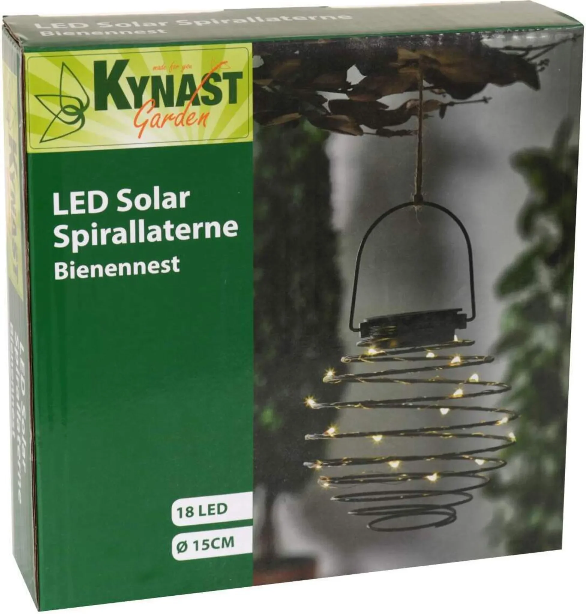 Die LED Solar-Spiralhängelaterne „Bienennest“ sorgt mit ihrem dekorativen Spiraldesign für stimmungsvolle Lichtakzente im Garten oder auf der Terrasse. Bei einsetzender Dämmerung schalten sich die 18 warmweißen LEDs automatisch ein und erzeugen ein angenehmes, gemütliches Leuchten. Tagsüber lädt die Solarzelle den integrierten Akku durch Sonnenenergie wieder auf – komplett kabellos und energieeffizient.