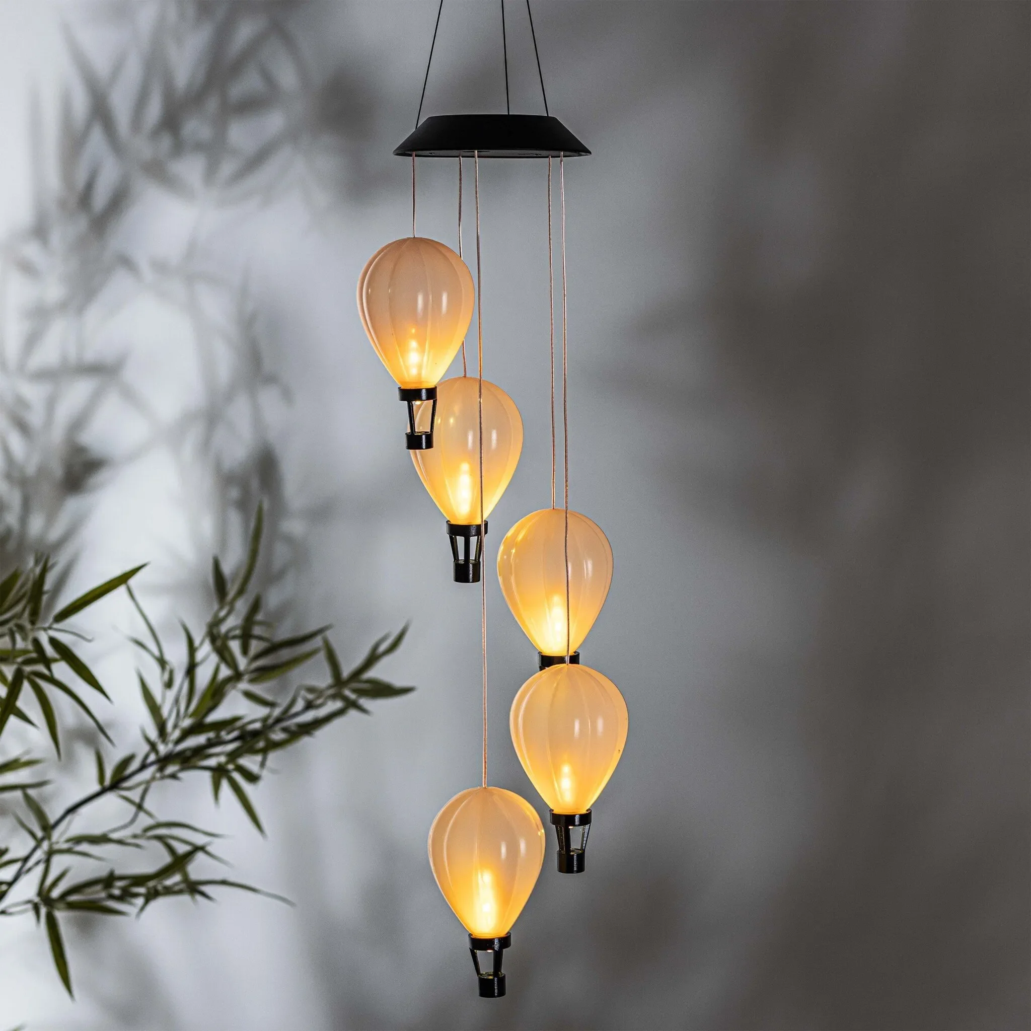 LED Solar Windspiel mit 5 leuchtenden Ballons – warmweiß, flackernd, 82 cm