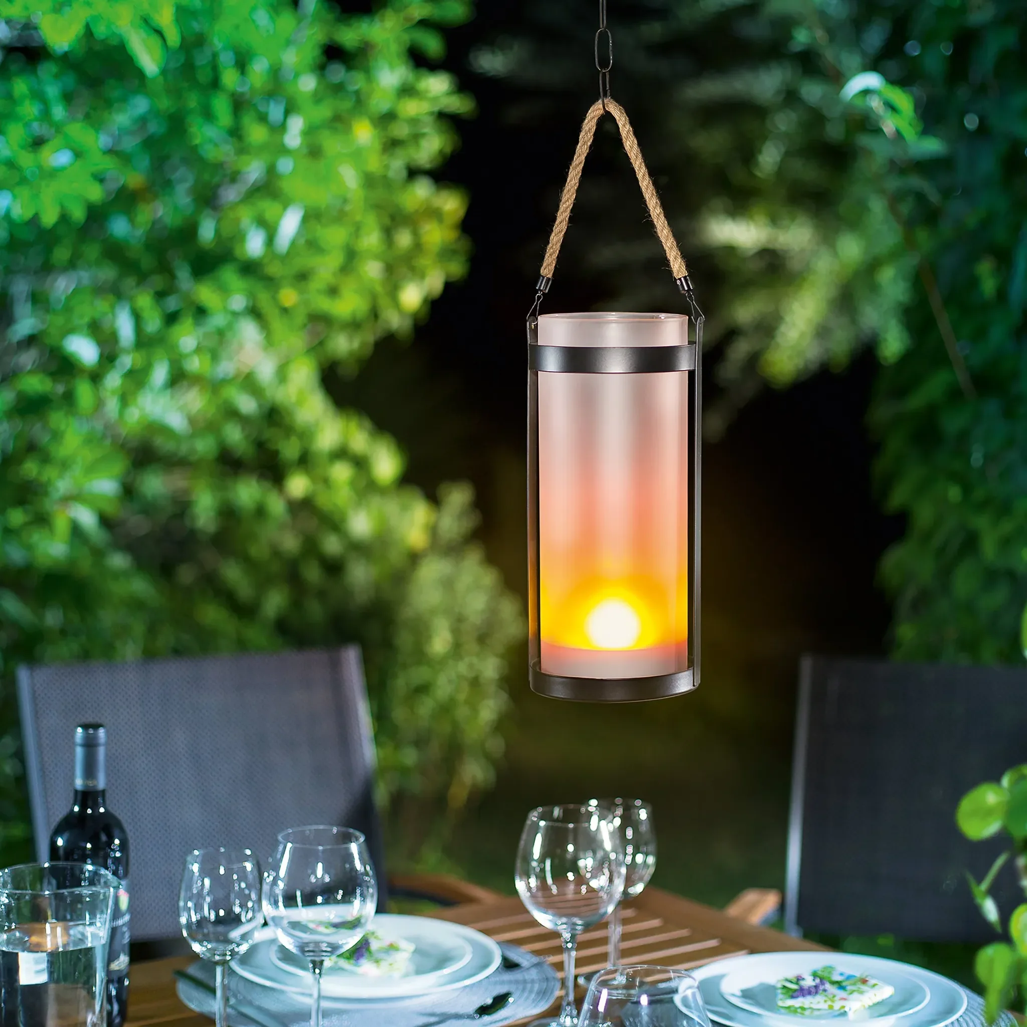Produktinformationen "esotec Solar-Laterne „Jasmin“ – Glas & Metall, Flammeneffekt, 31 cm, IP44"