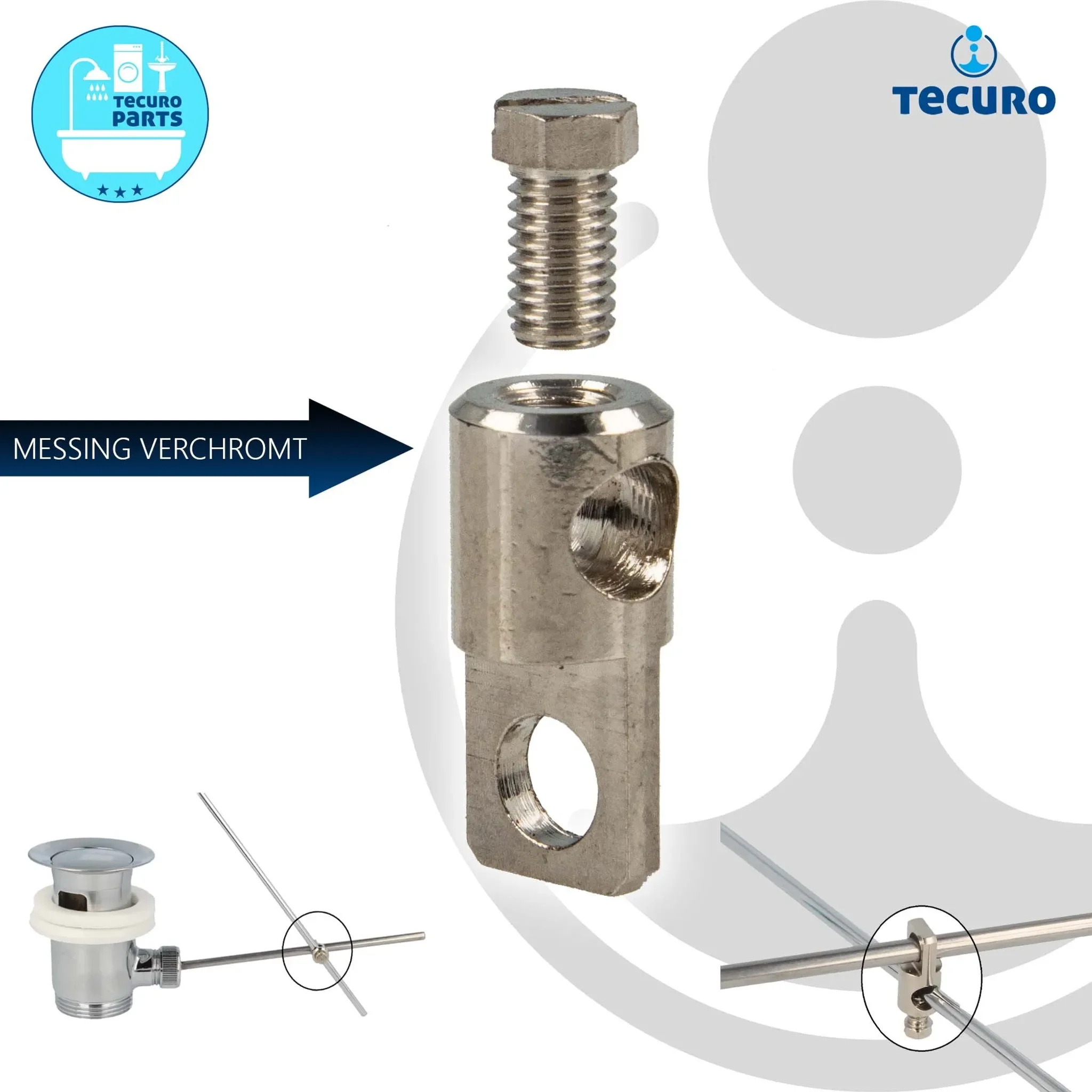 Das tecuro Gelenkstück ermöglicht die präzise Verbindung zwischen Zugstange der Armatur und Querstange einer Ablaufgarnitur. Es sorgt für eine zuverlässige und leichtgängige Betätigung des Ablaufs und ist damit ein essenzielles Ersatzteil für viele Bad- und Kücheninstallationen.